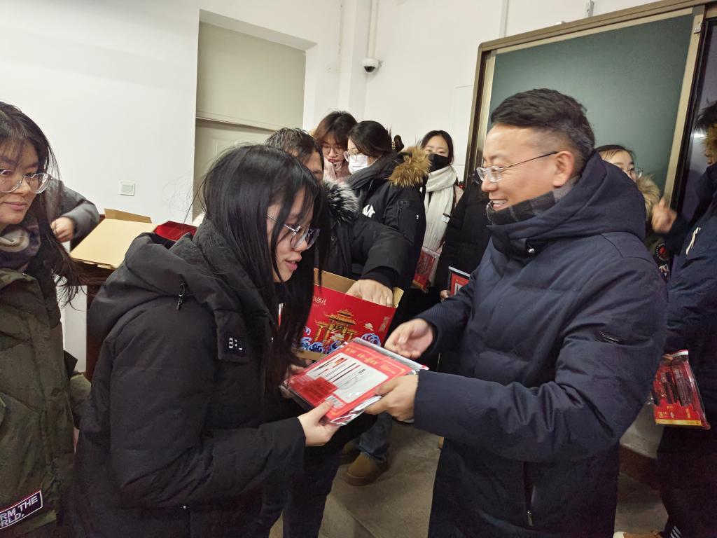 学院党委书记杨铮、院长赵晓亮和班导师为全体考研学生分发暖心文具礼包,并祝福全体考研学子研途辉煌、金榜题名、成功上岸!现场的气氛十分热烈,同学们纷纷表示深受鼓舞,一定遵守考试纪律,力争取得好成绩。