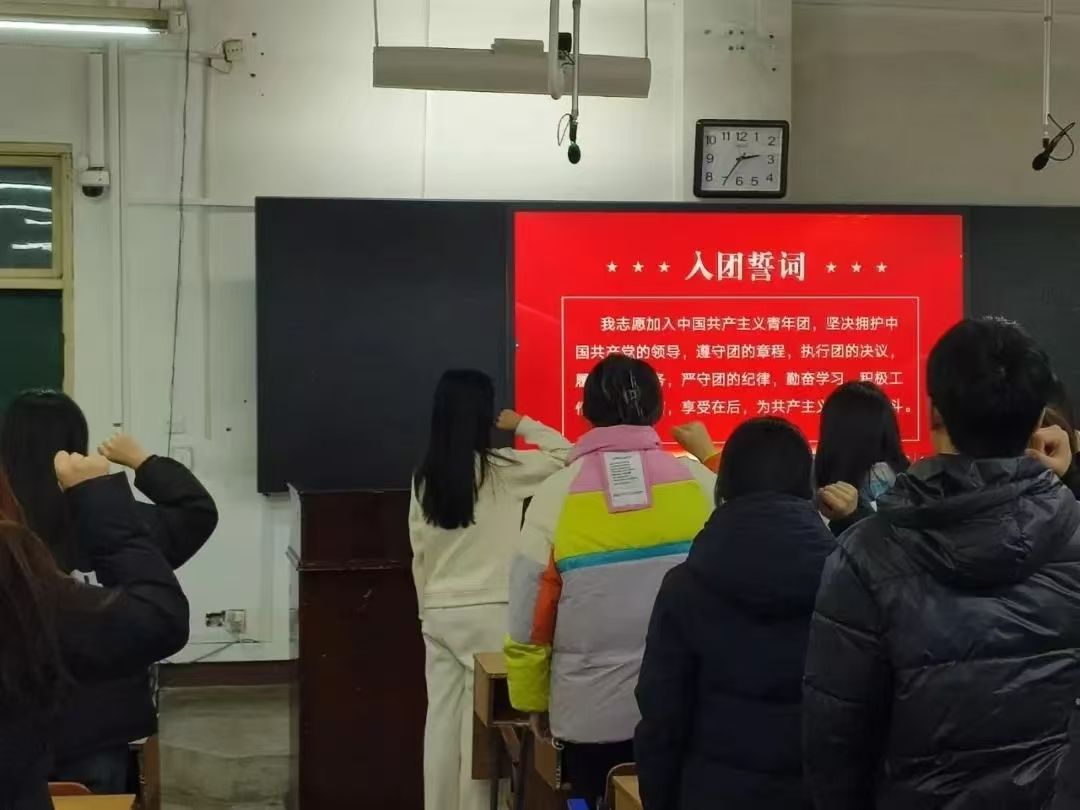 仪式在庄严的国歌声中拉开序幕,全体师生肃立,共同感受着这一神圣时刻。随后,在鲜艳的团旗下,新团员们高举右手,庄严宣誓。铿锵有力的誓言,表达了他们对团组织的忠诚和对共产主义事业的追求。